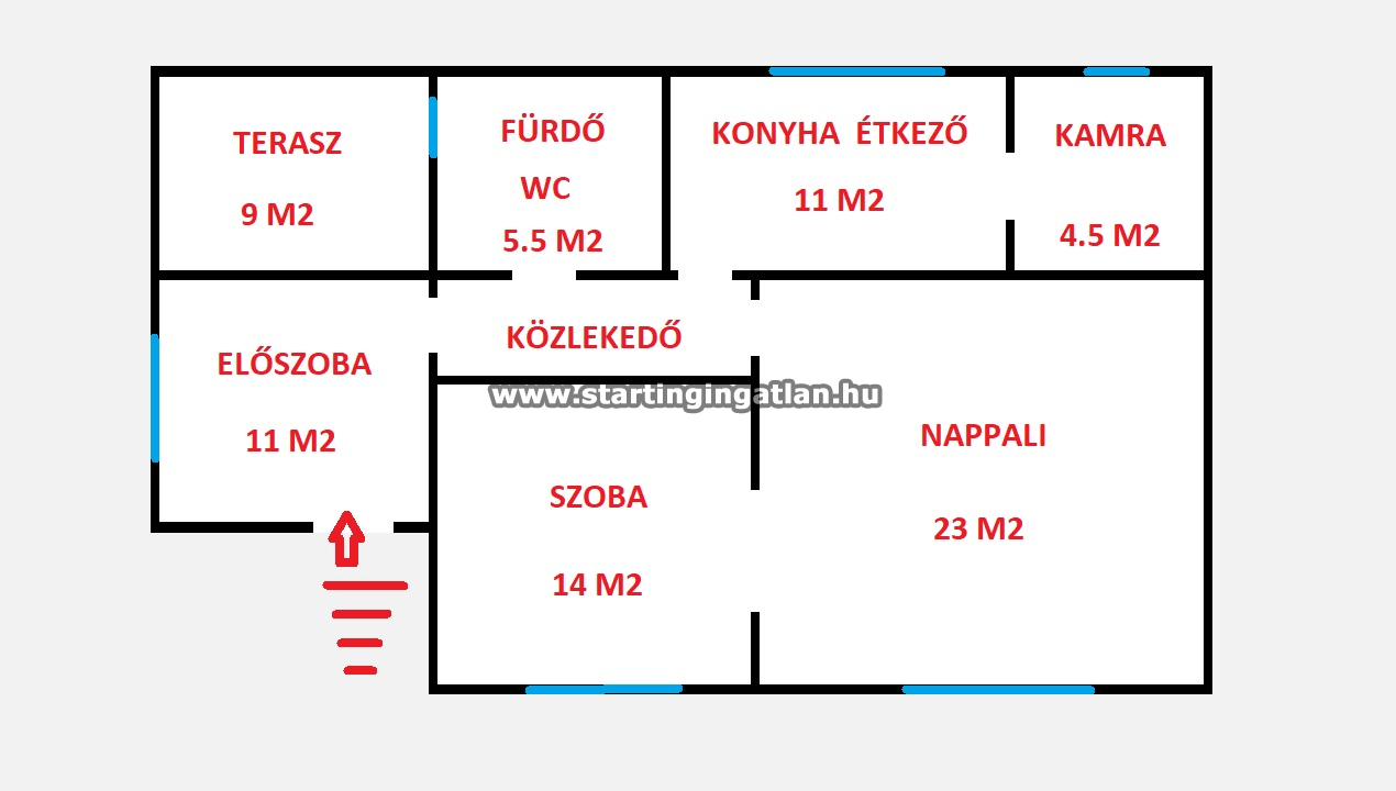 - Szobák: 2 szoba, 2 félszoba