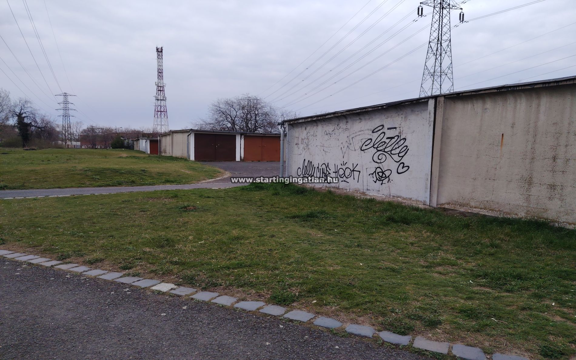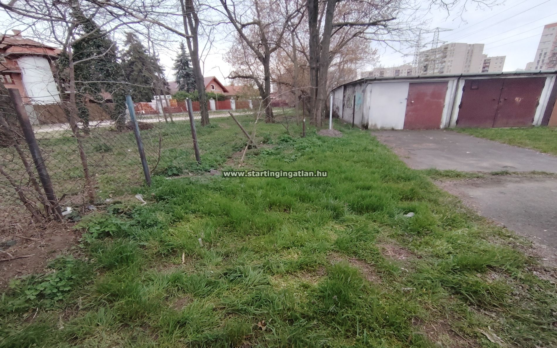 A garázs önkormányzati területen áll, így a föld nem a tulajdon része, de a garázs használata hosszú távon biztosított bérleti szerződés keretében.