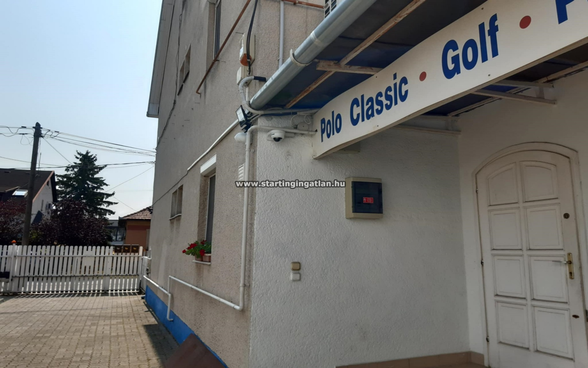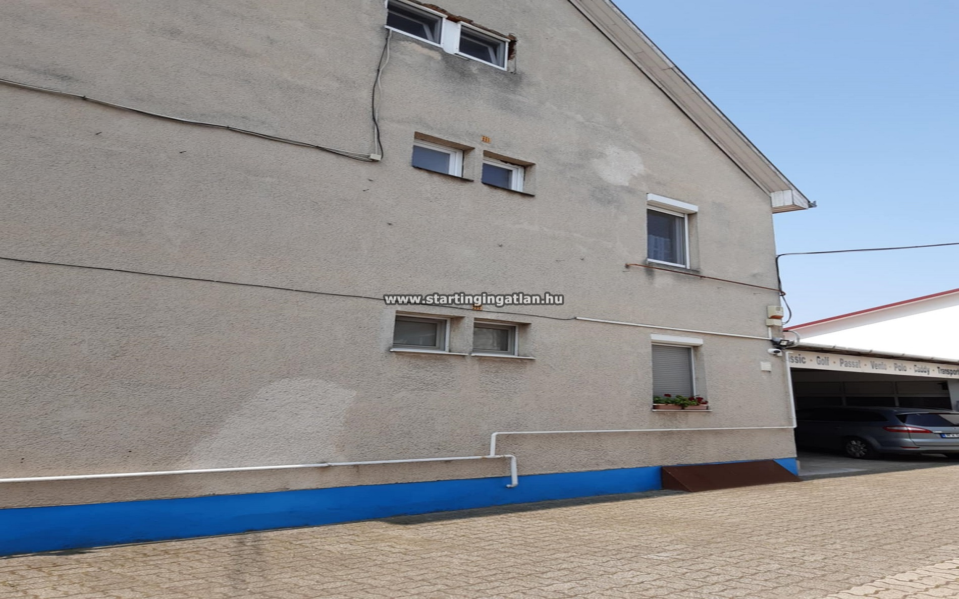Az udvar teljes egészében térkövezett, így könnyű a közlekedés és a parkolás – akár ügyfelek, akár céges járművek számára.
