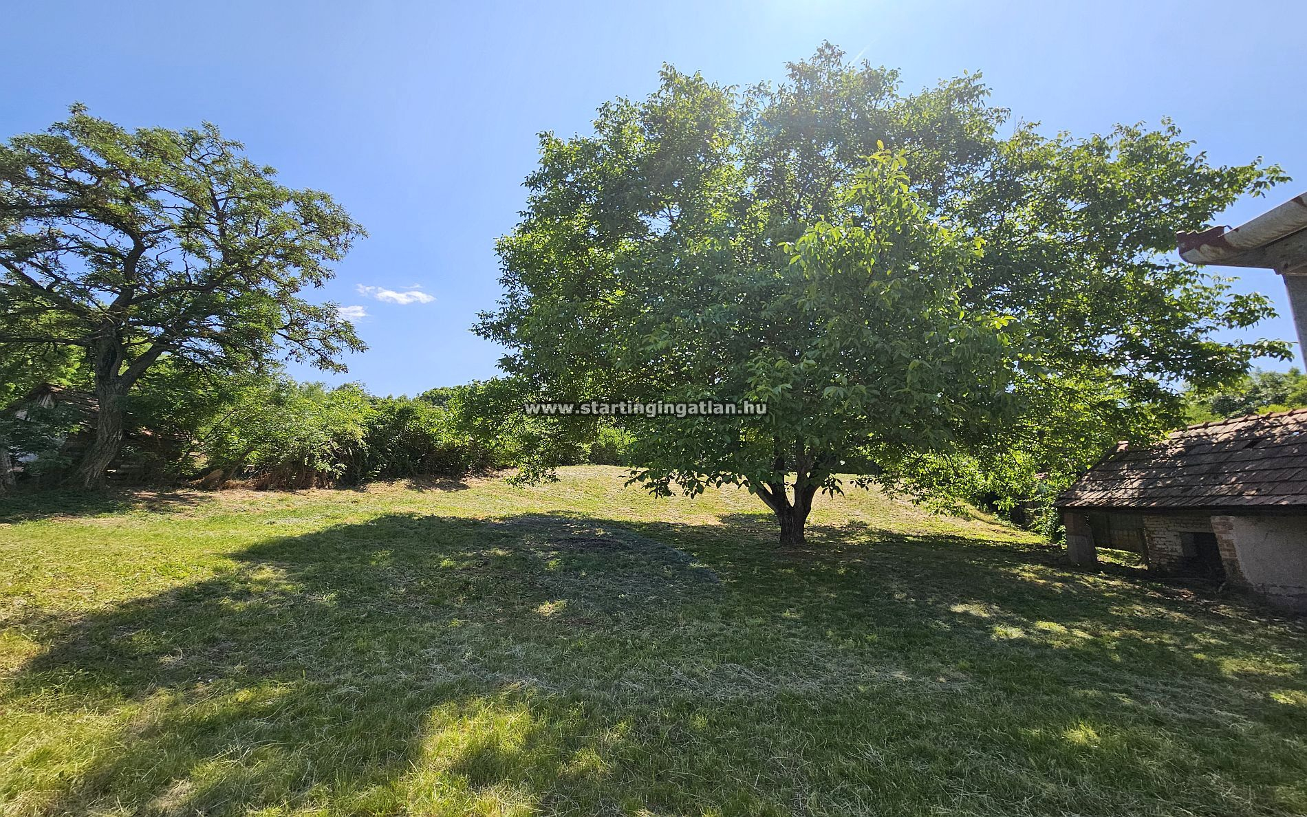 A telek különleges karakterét nemcsak a csodálatos fekvése adja, hanem annak sokoldalúsága is. Az utcafront 26,5 méter széles, a hosszúság pedig eléri a 80 métert, a végén 20 méterre szűkülve – éppen annyira változatos a formája, mint a benne rejlő lehetőségek. Az ingatlanon jelenleg egy 50 m²-es ház áll, amely vagy bontásra, vagy radikális újragondolásra vár, a döntést az új tulajdonos szabadon hozhatja meg, de jelenlegi állapotában lakhatásra nem alkalmas. Fürdőszoba sincs, a ház inkább múltidéző lenyomata annak, ami lehetett, mint annak, ami még lehetne.